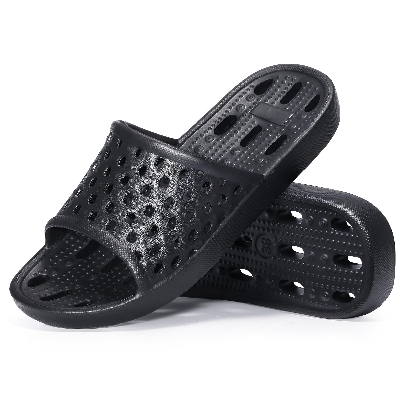 The fast-drying material with drainage holes makes shower time hassle-free, keeping your feet dry and comfortable.